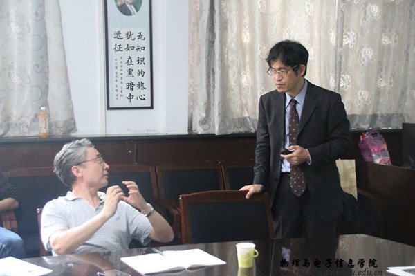 报告二:2016年6月29日下午,自日本奈良女子大学生活环境学部的原田雅史教授,在物理楼会议室展开了一次以Photoreduction synthesis of metal nanoparticles: Synthesis and structural characterization (光照射还原法制备金属纳米粒子:制备方法及其结构表征) 为题的学术讲座。其中就具有不同微结构环境下的高分子溶液、微乳液、离子液体等体系中所形成的金属纳米粒子的形成机理进行了详细的讲解;同时对用绿色化学方法(超临界CO2、离子液体、微波辅助法等)制备金属纳米粒子和采用UV-Vis、TEM、SAXS、EXAFS法表征微乳液、金属纳米粒子的微结构做了系统的介绍。在讲座中,原田雅史教授耐心的解答着每一位提问者提出的问题,对每一个涉及到的学术地细节做了深入的研究和讨论。
