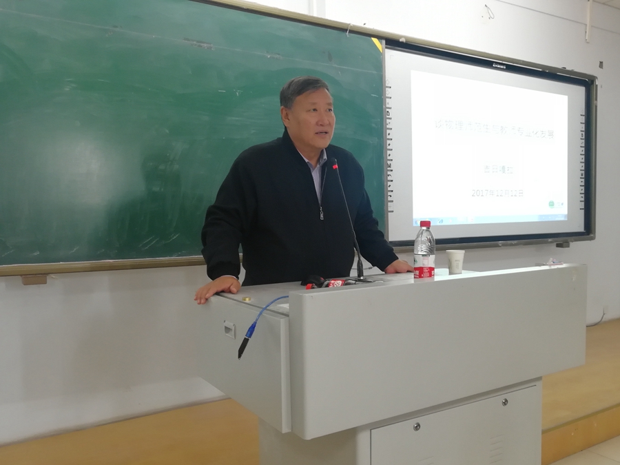 吉老师基于对教学的热衷,对教师教育现状的思考,指出作为一名教师最重要的是态度、意识、目标、毅力,同时应该加强对自身身心素养、道德素养、能力素养、知识素养和美学素养的培养,并不断地反思改进。他重点指出,《高中物理课程标准》将培养学生的物理核心素养作为重点内容,这就意味着作为教师要专业化发展。最后他对师范生们寄予希冀,希望大家不仅要多看书,更要聆听窗外的教育声音,触摸教育家的头颅,为日后走上教师岗位打下坚实的基础。