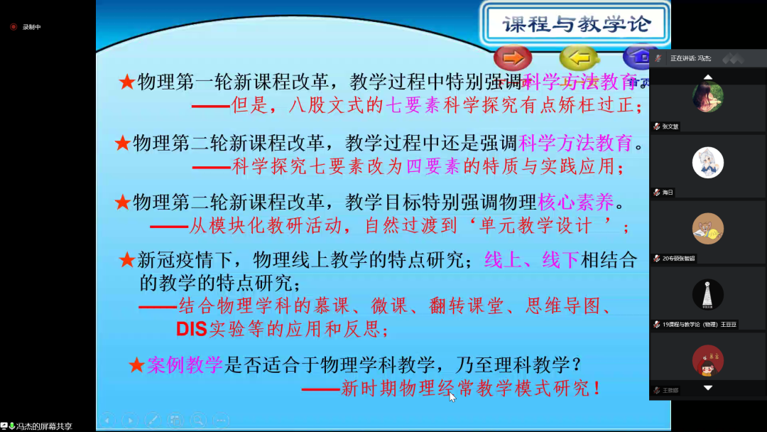 邀请上海师范大学冯杰教授做题为《精准基础教育改革实践,探索学、研、教能力培养途径》的线上报告。报告由孙咏萍老师主持,多所师范院校的教育硕士导师和学生在线聆听,并积极交流。