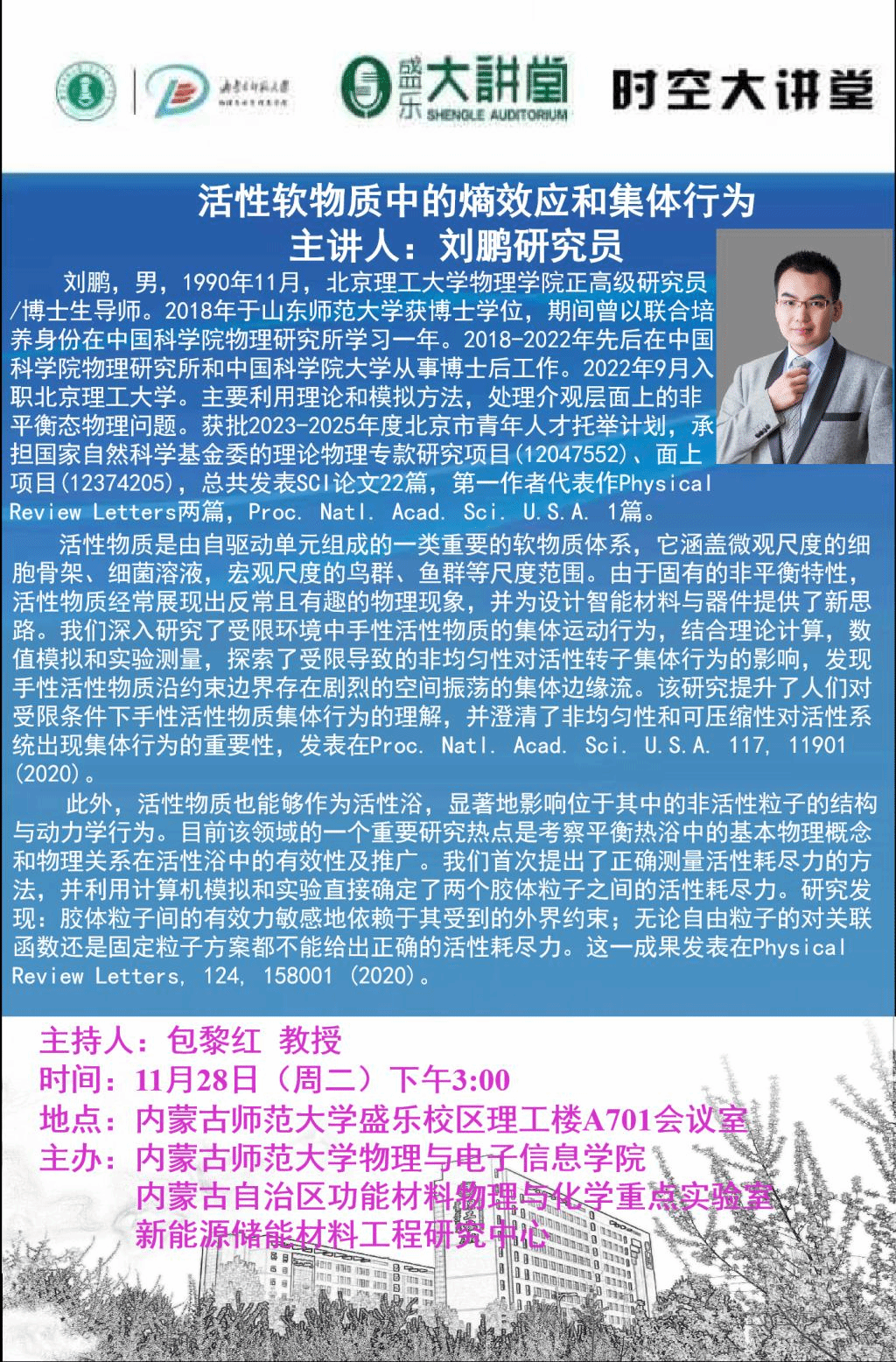 【预告|时空大讲堂】活性软物质中的熵效应和集体行为