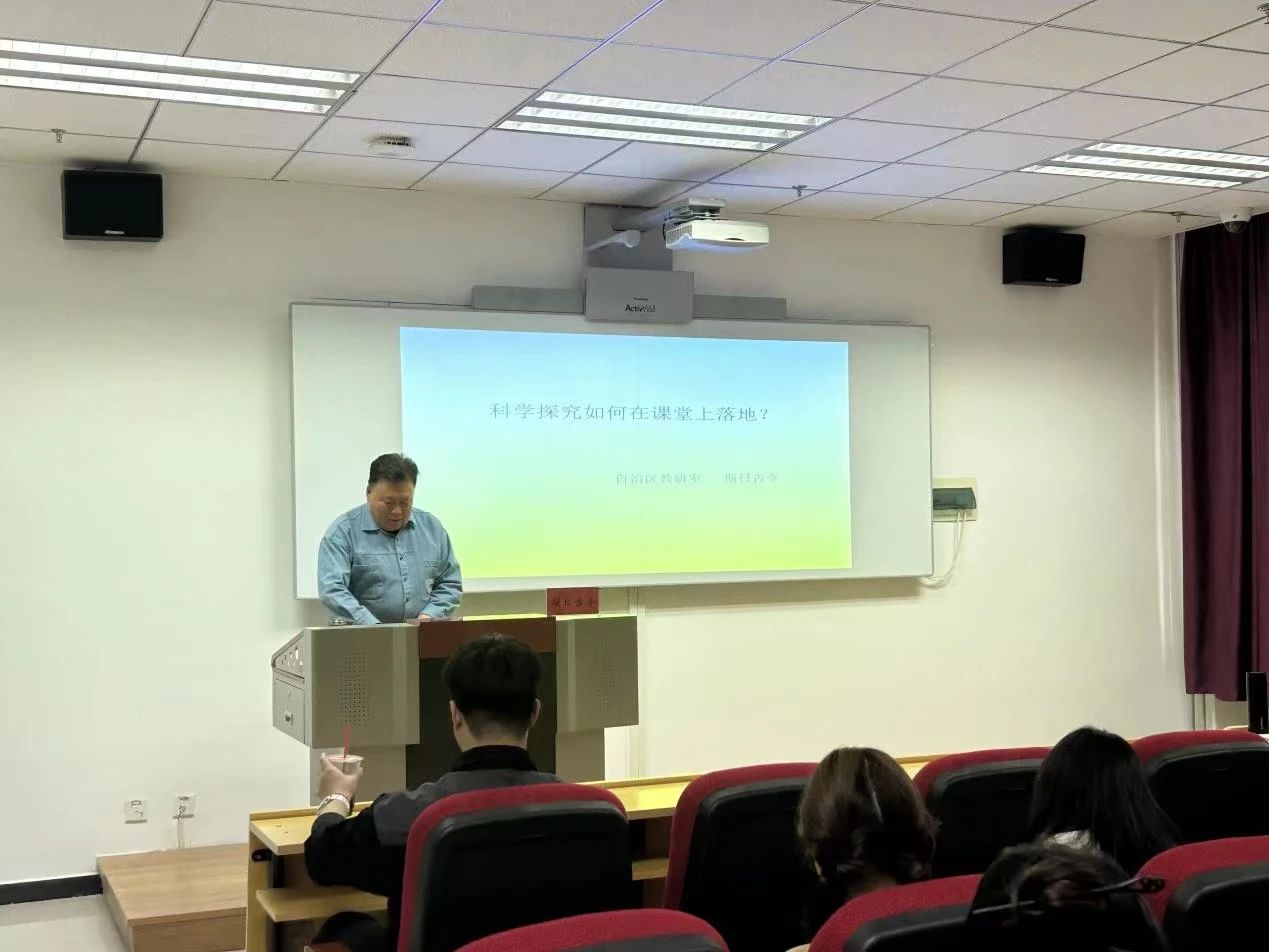 教育硕士学位点荣幸邀请到了内蒙古自治区教研室资深物理教研员、特级教师斯日古令为我们带来了一场主题为“科学探究如何在课堂上落地”的精彩讲座。学院教师教育团队导师及本硕师范生等众多师生积极参与,共同聆听斯老师的分享。